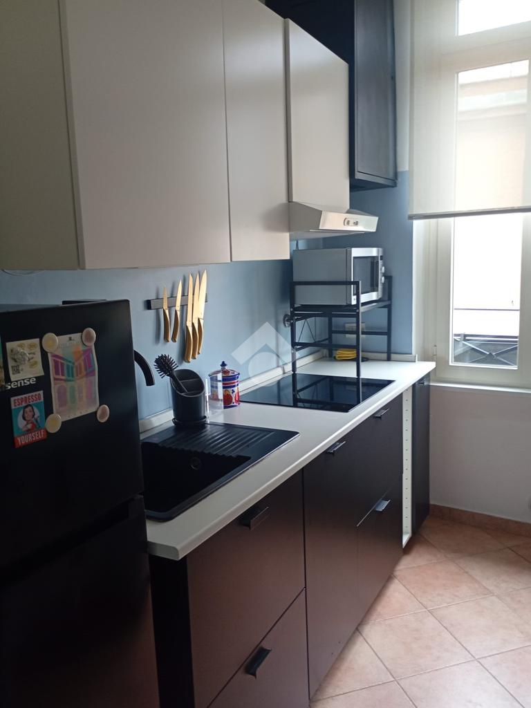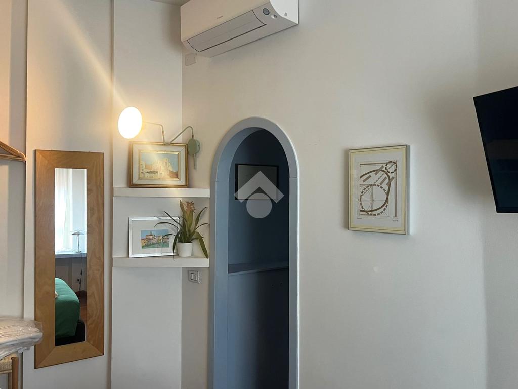 L'appartamento internamente è composto da ingresso, soggiorno con due finestre, cucina, due camere da letto di cui una con bagno en suite finestrato e un secondo servizio. L'immobile, ristrutturato recentemente, si presenta con pavimentazione in parquet, riscaldamento autonomo e aria condizionata.